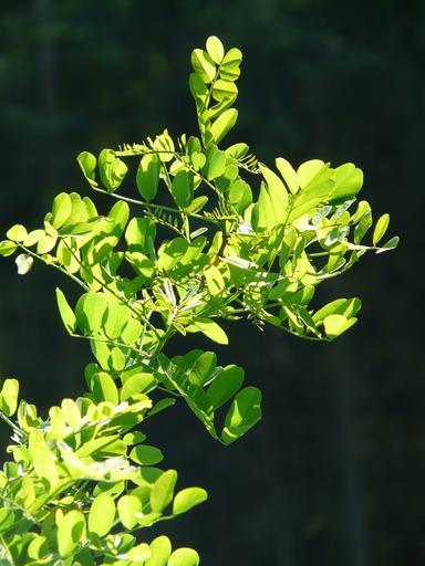 Keywords: branch leaves common maple green back light light green bright robinia pseudoacacia robinia false acacia silver rain tree ornamental plant flora acacia