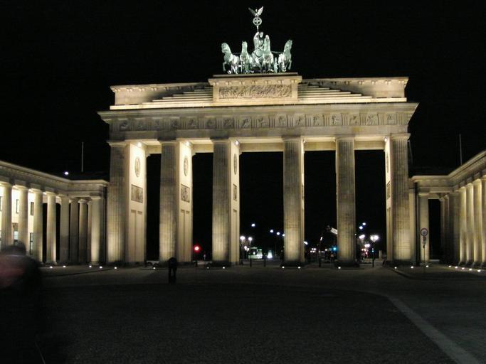 Keywords: brandenburg gate berlin architecture building landmark columnar night historically potsdam place night photograph monument places of interest germany capital