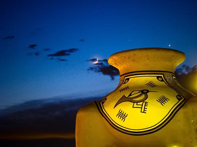 Keywords: brasilia brazil sky clouds night evening moon stars ceramic pot vase close-up macro