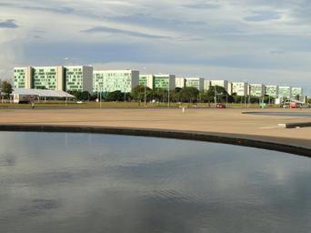 Keywords: brasilia brazil water sky clouds buildings architecture nature outside lake pond trees