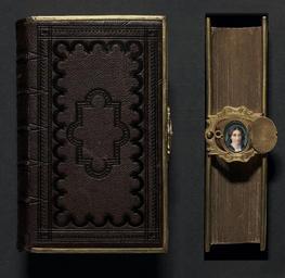 Keywords: bookbinding historic antique book binding indoor photo border In a nod to earlier times, this 19th-century English binding of brown goatskin is edged in brass and includes a brass clasp. An inscription inside the book reads: "Carrie Wilkie the gift of her dear Mother on completing her 18th year." The woman pictured in the miniature is possibly Carrie Wilkie's mother. Underneath the clasp you can see that the edges of the text have been covered with gold leaf. This book was bound in Oxford or London by James Hayday (1796-1872) who first appears in the London directories in 1825 as Hayday & Boyer. From 1829 he worked on his own, and by 1840 Hayday had also established a firm at Oxford. He enjoyed considerable prosperity up until 1848, when his business went into decline. In the years 1837-1838 he is known to have employed between 30 and 40 people, including 10 finishers, a large number for this time. Hayday was known for his fine bindings during the first half of the 19th century, and as with his contemporaries, these bindings were pastiches of earlier styles. Donated to the Alexander Turnbull Library in 1940 by Elizabeth Laing. Upper cover and fore-edge of ‘The Book of Common Prayer’ (Oxford: Printed at the University Press, sold by E. Gardner and Son, 1853). REng BIBLE 1853. In a nod to earlier times, this 19th-century English binding of brown goatskin is edged in brass and includes a brass clasp. An inscription inside the book reads: "Carrie Wilkie the gift of her dear Mother on completing her 18th year." The woman pictured in the miniature is possibly Carrie Wilkie's mother. Underneath the clasp you can see that the edges of the text have been covered with gold leaf. This book was bound in Oxford or London by James Hayday (1796-1872) who first appears in the London directories in 1825 as Hayday & Boyer. From 1829 he worked on his own, and by 1840 Hayday had also established a firm at Oxford. He enjoyed considerable prosperity up until 1848, when his business went into decline. In the years 1837-1838 he is known to have employed between 30 and 40 people, including 10 finishers, a large number for this time. Hayday was known for his fine bindings during the first half of the 19th century, and as with his contemporaries, these bindings were pastiches of earlier styles. Donated to the Alexander Turnbull Library in 1940 by Elizabeth Laing. Upper cover and fore-edge of ‘The Book of Common Prayer’ (Oxford: Printed at the University Press, sold by E. Gardner and Son, 1853). REng BIBLE 1853. |