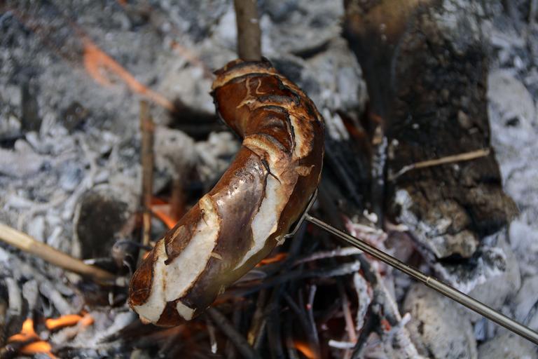 Keywords: bratwurst grill sausage fry sizzle barbecue sausage heat eat meat grilling fire embers delicious firewood burn smoke heiss grilled