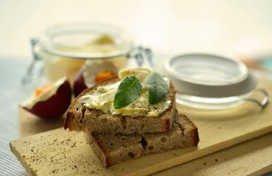 Keywords: bread butter breakfast bread and butter farmer's bread eat food close nutrition bread covering herbs