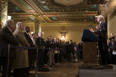 Keywords: Breakfast before 2015 Veterans Day parade 151111-N-LV331-004.jpg en 151111-N-LV331-004 NEW YORK Nov 11 2015 Secretary of the Navy SECNAV Ray Mabus delivers remarks during a breakfast hosted by New York City Mayor Bill de Blasio before the 2015 Veterans Day parade in New York City Mabus and the crew of USS New York LPD 21 joined more than 400 local Sailors in marching down 5th avenue to represent the U S Navy as the featured service for this year's parade U S Navy photo by Mass Communication Specialist 2nd Class Armando Gonzales/Released Unit Navy Media Content Services DVIDS Tags Secretary of the Navy; Ray Mabus; power; travel; budget; presence; partnerships; spending; Navy; people; government; SECNAV; Marine Corps; NMCS; DVIDS Bulk Import 2015-11-11 Armando Gonzales https //www dvidshub net/image/2293192/breakfast-before-2015-veterans-day-parade 151111-N-LV331-004 2015-11-18 00 40 NEW YORK NY US PD-USGov-Military-Navy Ray Mabus Veterans Day 2015 USS New York LPD-21 Images from DoD uploaded by Fæ
