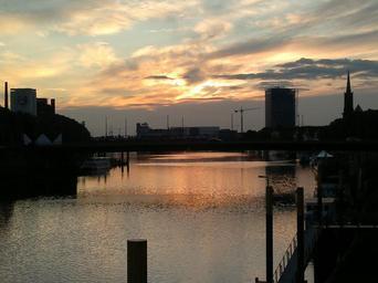 Keywords: bremen weser sunset bridge river abendstimmung water