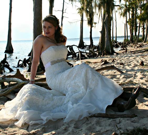 Keywords: bride wedding dress marriage happy female white romantic gown wife married