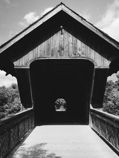 Keywords: bridge black and white country landscape historical environment river wooden wooden bridge