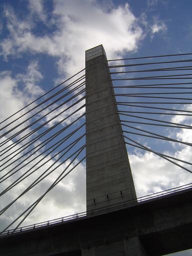 Keywords: bridge cable-stayed bridge structure construction suspension stayed transportation perspective sky clouds