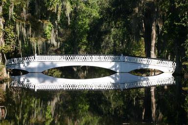 Keywords: bridge crossing white water park bridge in the backlight river
