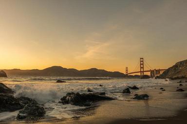 Keywords: bridge golden gate bridge sea ocean sailing boat sunset beach last light