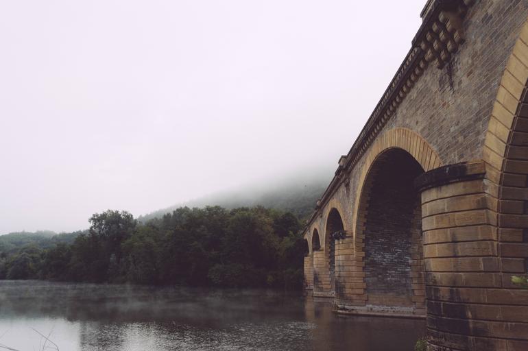 Keywords: bridge historic arches river crossing stone landmark architecture water building infrastructure rainy weather structure