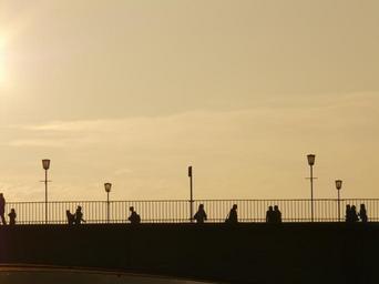 Keywords: bridge human profile silhouette web street lamp back light everyday life city road live