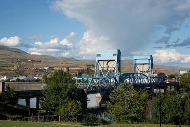 Keywords: bridge idaho sky clouds architecture mountains trees landscape