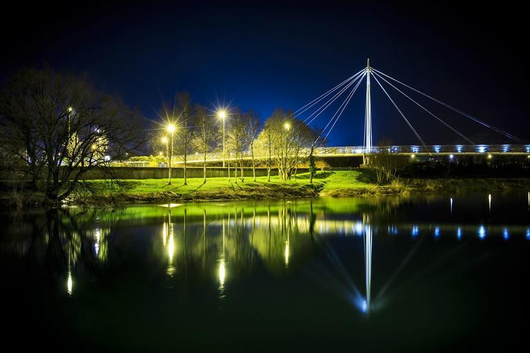 Keywords: bridge night architecture travel landmark river evening light reflection view illuminated outdoors