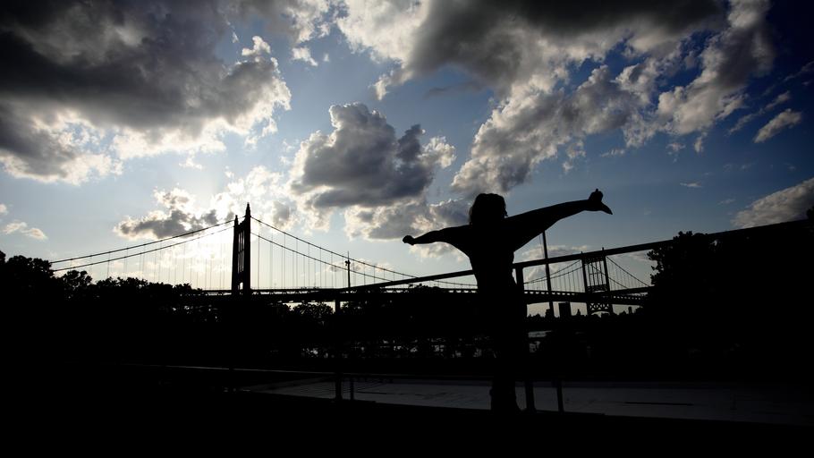 Keywords: bridge nyc girl silhouette sky clouds outdoors scenic tranquil weather meteorology cloudscape environment