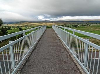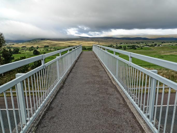 Keywords: bridge perspective intrusion crossing vanishing point destination distance construction structure environmental impact environment impact tarmac symmetry design industrial end leading foot way horizon rural conflict over footpath route pathway landscape