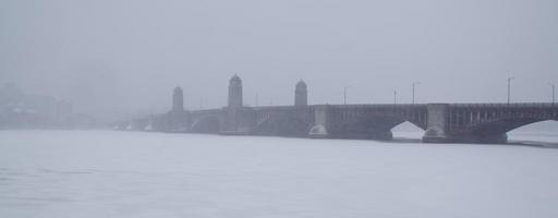 Keywords: bridge river charles river longfellow bridge massachusetts boston ice blizzard snow