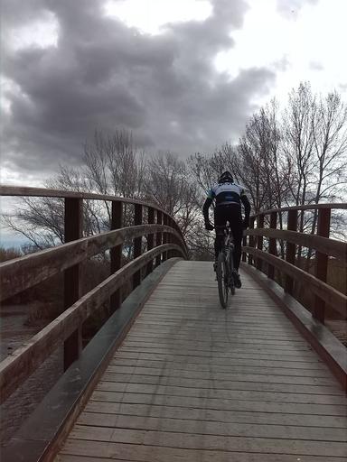 Keywords: bridge river cross path urban landscape sport cyclist risk soledad