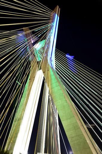 Keywords: bridge suspended on cables são paulo architecture postcard lights night highway brazil urban modern architecture led lights color colorful night photo