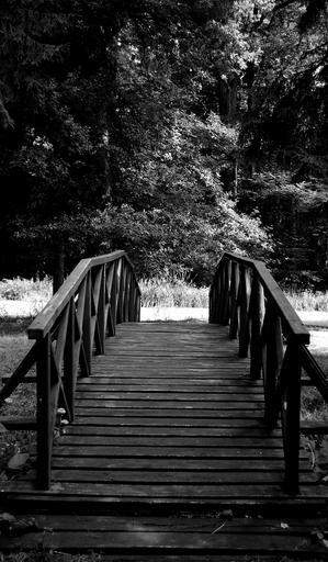 MAKE A MEME View Large Image bridge wooden black and white nature trees
