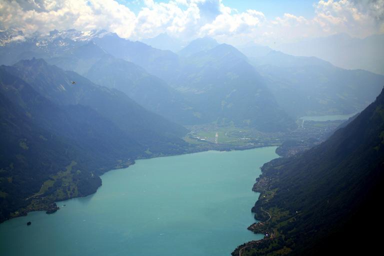 Keywords: brienz lake of brienz switzerland mountains alpine landscape haze nature sky lake water blue view clouds hiking lakes weather more nice weather wanderer tourists distant view beautiful leisure panorama mountain sunday outing