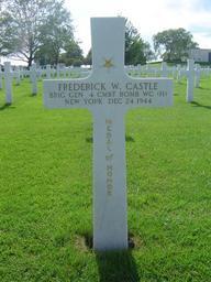 | Keywords: Brig-Gen-FW-Castle.JPG Tomb of Brigade General Frederick Walker Castle in the American Military Cemetary of Hombourg Henri-Chapelle Province of Liège Belgium Tomb location D13/53 Own 2007-05-19 Eric Dodémont dodeeric Check categories 2008 November 7 en wikipedia Frederick_Walker_Castle United States Air Force Frederick Walker Castle Photographs of Medal of Honor recipient gravestones Henri-Chapelle American Cemetery and Memorial | ||||
