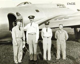 Keywords: brigadier general clarence s. bill irvine special collection photo brigadiergeneralclarencesbillirvinespecialcollectionphoto â boeing âboeing boeing boeing b-17 boeingb17 b-17 b17 boeing b-17 flying fortress boeingb17flyingfortress boeing flying fortress boeingflyingfortress flying fortress flyingfortress bomber b-17 flying fortress b17flyingfortress outdoor monochrome Catalog #: 09_02047 Title: Brigadier General Clarence S. ""Bill"" Irvine Special Collection Photo Additional Information: Clarence S. Irvine (on left) with three unidentified men standing in front of a Boeing B-17 Flying Fortress aircraft, Brigadier General Clarence Irvine enjoyed a long distinguished military career, mainly involving engineering. He served with the XXI Bomber Command (B-29's) during WWII and continued to serve throughout the 1950s and 1960s. Corporation Name: Boeing Tags: Brigadier General Clarence S. ""Bill"" Irvine Special Collection Photo, Boeing Repository: San Diego Air and Space Museum Archive Catalog #: 09_02047 Title: Brigadier General Clarence S. ""Bill"" Irvine Special Collection Photo Additional Information: Clarence S. Irvine (on left) with three unidentified men standing in front of a Boeing B-17 Flying Fortress aircraft, Brigadier General Clarence Irvine enjoyed a long distinguished military career, mainly involving engineering. He served with the XXI Bomber Command (B-29's) during WWII and continued to serve throughout the 1950s and 1960s. Corporation Name: Boeing Tags: Brigadier General Clarence S. ""Bill"" Irvine Special Collection Photo, Boeing Repository: San Diego Air and Space Museum Archive |