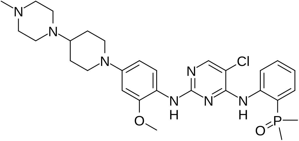 Keywords: Brigatinib.svg Chemical structure of brigatinib svg AP26113 AP-26113 Own 17 34 25 February 2014 UTC Ed Edgar181 Protein kinase inhibitors Piperidines Antineoplastic agents Aminopyrimidines Phosphine oxides Piperazines