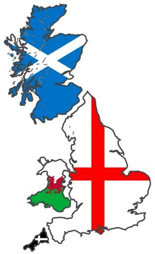 Keywords: Britain breakup.svg Flags of Scotland Wales Cornwall and England with their respective areas separated from each other Own 2009-08-07 Joowwww Maps of the United Kingdom