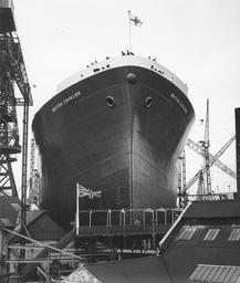 | Keywords: sunderland shipbuilding j.l. thompson & sons ltd jlthompsonsonsltd north sands sunderland northsandssunderland british cavalier britishcavalier tanker shipyard ship launch shiplaunch blackandwhite monochrome black and white View of the tanker ‘British Cavalier’ ready for launch at the North Sands shipyard of J.L. Thompson & Sons, Sunderland, 19 June 1962 (TWAM ref. DS.JLT4/PH/1/700/2). This set celebrates the achievements of the famous Sunderland shipbuilding firm Joseph L. Thompson & Sons. The company’s origins date back to 1846 when the firm was known as Robert Thompson & Sons. Robert Thompson senior died in 1860, leaving his second son Joseph Lowes Thompson in control. In 1870 the shipyard completed its last wooden vessel and was then adapted for iron shipbuilding. By 1880 the firm had expanded its operations over much of North Sands and in 1884 completed the construction of Manor Quay, which served as fitting out and repair facilities. For many years in the late nineteenth century the yard was the most productive in Sunderland and in 1894 had the fourth largest output of any shipyard in the world. The Depression affected the firm severely in the early 1930s and no vessels were launched from 1931 to 1934. However, during those years the company developed a hull design giving greater efficiency and economy in service. During the Second World War the prototype developed by Joseph L. Thompson & Sons proved so popular that it was used by the US Government as the basis of over 2,700 Liberty ships built at American shipyards between 1942 and 1945. After the War the North Sands shipyard went on to build many fine cargo ships, oil tankers and bulk carriers. Sadly the shipyard closed in 1979, although it briefly reopened in 1986 to construct the crane barge ITM Challenger. (Copyright) We're happy for you to share these digital images within the spirit of The Commons. Please cite 'Tyne & Wear Archives & Museums' when reusing. Certain restrictions on high quality reproductions and commercial use of the original physical version apply though; if you're unsure please email archives@twmuseums.org.uk View of the tanker ‘British Cavalier’ ready for launch at the North Sands shipyard of J.L. Thompson & Sons, Sunderland, 19 June 1962 (TWAM ref. DS.JLT4/PH/1/700/2). This set celebrates the achievements of the famous Sunderland shipbuilding firm Joseph L. Thompson & Sons. The company’s origins date back to 1846 when the firm was known as Robert Thompson & Sons. Robert Thompson senior died in 1860, leaving his second son Joseph Lowes Thompson in control. In 1870 the shipyard completed its last wooden vessel and was then adapted for iron shipbuilding. By 1880 the firm had expanded its operations over much of North Sands and in 1884 completed the construction of Manor Quay, which served as fitting out and repair facilities. For many years in the late nineteenth century the yard was the most productive in Sunderland and in 1894 had the fourth largest output of any shipyard in the world. The Depression affected the firm severely in the early 1930s and no vessels were launched from 1931 to 1934. However, during those years the company developed a hull design giving greater efficiency and economy in service. During the Second World War the prototype developed by Joseph L. Thompson & Sons proved so popular that it was used by the US Government as the basis of over 2,700 Liberty ships built at American shipyards between 1942 and 1945. After the War the North Sands shipyard went on to build many fine cargo ships, oil tankers and bulk carriers. Sadly the shipyard closed in 1979, although it briefly reopened in 1986 to construct the crane barge ITM Challenger. (Copyright) We're happy for you to share these digital images within the spirit of The Commons. Please cite 'Tyne & Wear Archives & Museums' when reusing. Certain restrictions on high quality reproductions and commercial use of the original physical version apply though; if you're unsure please email archives@twmuseums.org.uk |