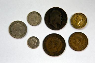 Keywords: british coinage obverse faces pre-decimalisation soiled circulated old historic money cash