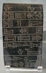 Keywords: British Museum Foundation Tablet.jpg en Foundation tablet from the Temple of Inanna at Uruk dating to the reign of Ur-Nammu BabelStone own Museum British Museum credit line 2010-06-24 Details Foundation tablet from the Temple of Inanna at Uruk Eanna dating to the reign of Ur-Nammu Translation from D Frayne The Royal inscriptions of Mesopotamia Early periods vol 3/2 Ur III period 2112-2004 BC Toronto 1993 p 71-72 For the goddess Inanna Lady of Eanna his lady Ur-Nammu mighty man king of the lands of Sumer and Akkad built and restored her temple for her Length 3 5 inches<br/>Width 2 75 inches G56/MES1/10 cc-zero Third Dynasty of Ur Ur-Nammu Room 56 British Museum Cuneiform on media Cuneiform on foundation objects A cuneiform Ù cuneiform LUGAL king Sumerogram |