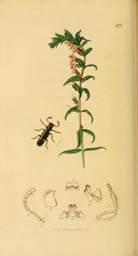 | Keywords: Britishentomologyvolume2Plate270.png Opilus Fasciatus Tarsostenus univittatus<br/> Bartsia Odontites Odontites vernus Bartsia odontites Red Barsia s of the genera of insects found in Great Britain and Ireland containing coloured figures from nature of the most rare and beautiful species and in many instances of the plants upon which they are found Vol II http //www archive org/details/britishentomolog2182340curt Coleoptera Part II plate 270 creator John Curtis entomologist 1823-1840 PD-old-100 Tarsostenus univittatus-Curtis png British Entomology Volume 2 John Curtis Tarsostenus univittatus Odontites vernus |