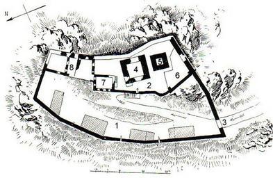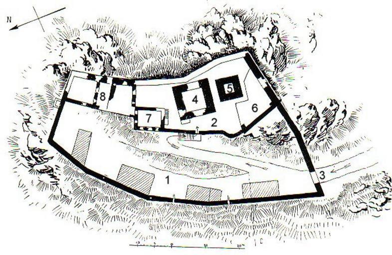 Keywords: Brn-0087-0003.jpg en Floor plan of castle Haus Murach at Oberviechtach Upper Palatinate/Bavaria 1 outer bailey; 2 keep; 3 outer bailey's gate; 4 residential tower žgranary ; 5 donjon; 6 chapel; 7 outhouses; 8 housing unit de Grundriss von Haus Murach bei Oberviechtach Oberpfalz/Bayern 1 Vorburg; 2 Hauptburg; 3 Vorburgtor; 4 Wohnturm žGetreidekasten ; 5 Bergfried; 6 Kapelle; 7 Nebengebäude; 8 Wohnbau http //www hdbg de/burgen/burgen_suche-burgen_detail php id brn-0087 topic einzelbild bid brn-0087-0003 Georg Hager 1906 PD-old-70 Castle Murach Haus Murach on the peak of the mountain Oberpfälzer Wald Haus Murach Images from Haus der Bayerischen Geschichte |