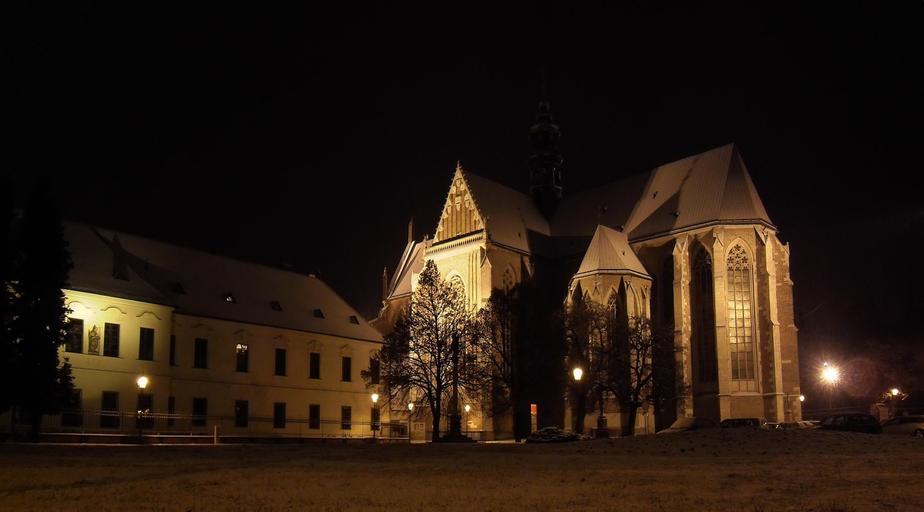 Keywords: brno czech republic night evening church building structure architecture lights lighting sky landscape outside scenic beautiful