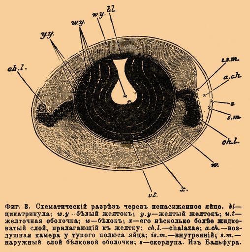 Keywords: Brockhaus-Efron Ovum 3.jpg Иллюст ация к статье Яйцо из энциклопедии Б окгауза и Еф она Фиг 3 Схематический аз ез че ез ненасиженное яйцо bl цикат икула; w y белый желток; y y желтый желток; u t желточная оболочка; w белок; х его несколько более жидковатый слой п илегающий к желтку; ch l chalazae; a ch воздушная каме а у тупого полюса яйца; is m внут енний; s m на ужный слой белковой оболочки; s ско лупа Из Бальфу а http //dic academic ru/dic nsf/brokgauz_efron/147033 ~ 1905 Б окгауз и Еф он PD-Brockhaus Efron Cell diagrams |