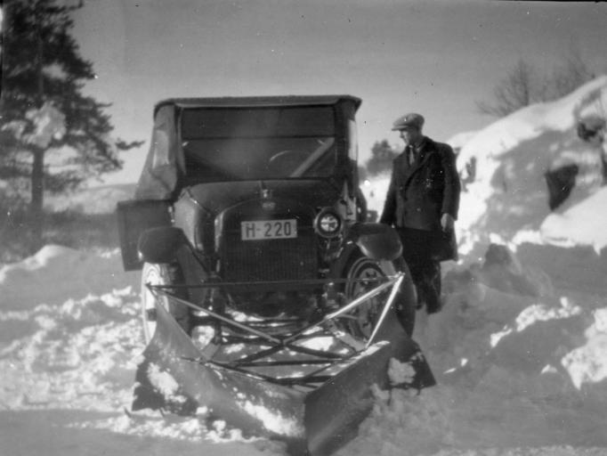 | Keywords: bil plog snø brøyting vei vinter auto car snow winter snow plow snowplow brødrene øveraasen brødreneøveraasen sauland notodden brøytebil sjåfør driver blackandwhite monochrome black and white Beskrivelse: Brøytebil og sjåfør År: 1926 Fotograf: Ukjent Fotografier fra Arbeidsdepartementet, Veikontoret, eske Fj 177, mappe 4. Mappen har tittel: A/S Brødrene Øveraasens Bilploger. Arkivreferanse: S-1194_Fj177_4_44 Description: "Snow plowing the road between Sauland and Notodden, February 1926" Photographer: Unknown Photograps from the Ministry of Public Works, Public Roads Office. In 1923, Hans and Even Øveraasen of Norway constructed an early snowplow for use on cars. This proved to be the start of a tradition in snow-clearing equipment for roads, railways and airports, as well as the foundation of the company Øveraasen Snow Removal Systems. Beskrivelse: Brøytebil og sjåfør År: 1926 Fotograf: Ukjent Fotografier fra Arbeidsdepartementet, Veikontoret, eske Fj 177, mappe 4. Mappen har tittel: A/S Brødrene Øveraasens Bilploger. Arkivreferanse: S-1194_Fj177_4_44 Description: "Snow plowing the road between Sauland and Notodden, February 1926" Photographer: Unknown Photograps from the Ministry of Public Works, Public Roads Office. In 1923, Hans and Even Øveraasen of Norway constructed an early snowplow for use on cars. This proved to be the start of a tradition in snow-clearing equipment for roads, railways and airports, as well as the foundation of the company Øveraasen Snow Removal Systems. |