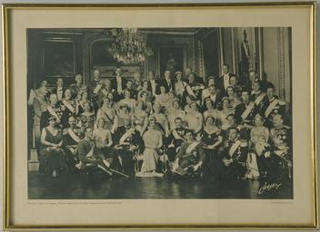 Keywords: Bröllopsgäster till Ingrid och Fredrik - Livrustkammaren - 5312.tif Märtha av Sverige prinsessa 1901- Stockholm Sverige Marie Louise av Schaumburg-Lippe prinsessa Margaretha av Sverige prinsessa 1899- Stockholm Sverige Margrethe av Danmark prinsessa Louise av Sverige Leopold III av Belgien kung Sibylla hertiginna av Västerbotten René av Bourbon-Parma prins Olav V av Norge kung plain text Victoria Patricia Ramsay lady Theodora av Baden prinsessa Thyra av Danmark prinsessa Thyra av Mecklenburg-Schwerin prinsessa Viggo av Danmark prins Wilhelm hertig av Södermanland prins av Sverige 1884- Tullgarns slott Sverige Wilhelm av Preussen kronprins Gustaf VI Adolf av Sverige kung hertig av Skåne 1882- Stockholms slott Sverige Gustaf Adolf Hertig av Västerbotten prins 1906- Stockholms slott Sverige plain text Gustav av Danmark prins Gustaf V av Sverige Eleanor Green Prinsessan Viggo av Danmark Georg av Grekland prins Feodora av Danmark prinsessa Hubertus av Preussen prins Helena Victoria av Schleswig-Holstein prinsessa Harald av Danmark prins Ingrid av Danmark drottning plain text Ingeborg hertiginna av Västergötland prinsessa Alexandrine av Danmark Drottning Alexandra av Mecklenburg-Schwerin Storhertiginna Alexandra av Connaught Prinsessa Alexandrine Louise av Danmark prinsessa Anastasia av Mecklenburg-Schwerin prinsessa Astrid av Sverige drottning av Belgien 1905- Arvfurstens palats Stockholm Sverige Axel av Danmark prins Arthur av Connaught och Strathearn hertig plain text Christian Ludwig av Mecklenburg prins Christian av Schaumburg-Lippe prins Christian X av Danmark kung Erik av Danmark greve av Rosenborg prins Frederik IX av Danmark kung Eugenie av Grekland prinsessa Prins Eugen hertig av Närke Konstnär 1865- Drottningholms slott Sverige Friedrich Franz IV av Mecklenburg storhertig Friedrich Sigismund av Preussen prins plain text Friedrich Frantz av Mecklenburg-Schwerin arvstorhertig Berthold Friedrich av Baden markgreve Bertil Hertig av Halland prins 1912- Stockholms slott Sverige Cecile av Preussen prinsessa Carl hertig av Västergötland prins 1861- Stockholm Sverige Carl se CarlJr prins Carl Johan hertig av Dalarna prins 1916- plain text sv Bröllopsgäster i full gala fotograferade på Stockholms slott enligt förteckning klistrad på baksidan <br/>Rad 1 sittande <br/>1 - Kronprinsessan Cecilie av Preussen<br/>2 - Konung Christian av Danmark<br/>3 - Prins Carl j r på golvet <br/>4 - Drottning Astrid av Belgien<br/>5 - Konung Gustaf<br/>6 - Kronprinsessan Ingrid<br/>7 - Kronprins Frederik<br/>8 - Prins Carl Johan på golvet <br/>9 - Drottning Alexandrine av Danmark<br/>10 - Konung Leopold av Belgien<br/>11 - Prins Bertil på golvet <br/>12 - Storhertiginnan Alexandra av Mecklenburg<br/>13 - Prins Arthur av Connaught<br/>Därbakom stående <br/>14 - Prinsessan Viggo av Danmark<br/>15 - Lady Patricia Ramsay<br/>16 - Prinsessan Thyra av Danmark <br/>17 - Prinsessan Ingeborg<br/>18 - Prinsessan Helena Victoria av Schleswig-Holstein<br/>19 - Prinsessan Sibylla<br/>20 - Prinsessan Arthur av Connaught<br/>21 - Prinsessan Renée av Bourbon<br/>22 - Kronprinsessan Louise<br/>23 - Kronprins Gustaf Adolf<br/>24 - Prins Wilhelm<br/>25 - Prins Georg av Grekland<br/>26 - Prins Waldemar av Danmark<br/>27 - Kronprinsessan Märtha av Norge<br/>28 - Prinsessan Feodora av Danmark<br/>29 - Prinsessan Thyra av Mecklenburg<br/>30 - Prinsessan Alexandrine-Louise av Danmark<br/>31 - Prinsessan Cecilie av Preussen<br/>32 - Prinsessan Alexandrine av Preussen<br/>33 - Prins René av Bourbon<br/>34 - Prinsessan Teodora av Baden<br/>35 - Prins Harald av Danmark<br/>36 - Prins Viggo av Danmark<br/>37 - Margreve Berthold av Baden<br/>38 - Prins Carl<br/>39 - Storhertig Friedrich Franz av Mecklenburg<br/>40 - Kronprins Wilhelm av Preussen<br/>41 - Prins Christian Ludwig av Mecklenburg<br/>42 - Prins Gustav av Danmark<br/>43 - Prins Eugen<br/>44 - Prinsessan Margaretha av Danmark<br/>45 - Prins Erik av Danmark<br/>46 - Prinsessan Anastasia av Mecklenburg<br/>47 - Prins Friedrich av Preussen<br/>48 - Prinsessan Marie Louise av Preussen<br/>49 - Arvstorhertig Friedrich Franz av Mecklenburg<br/>50 - Prins Axel av Danmark<br/>51 - Prinsessan Eugenie av Grekland<br/>52 - Prins Christian Schaumburg-Lippe<br/>53 - Kronprins Olav av Norge<br/>54 - Prins Hubertus av Preussen<br/>55 - Prins Gustaf Adolf <br/>Nertill till h signering skrivstil Jaeger <br/>Nedanför bilden text till v Prinsessan Ingrid och kronprins Frederik omgivna av de furstliga bröllopsgästerna på Stockholms slott Till h Nordisk Rotogravyr 1935 <br/>Montering bakom glas i smal förgylld ram På baksidan gul kartong med påklistrad bild med numrering och bildförklaring på mitten nertill stämpel namnchiffer KGB samt ETABL 1910 Över kanten en nu trasig brun klisterremsa Upphängning med två skruvaroch däremellan ståltråd original caption Bröllopsgäster till Ingrid och Fredrik 1935 paper - glass - wood - cardboard size mm 390 size mm 541 size mm 370 dager size mm 518 dager size mm 297 bild size mm 457 bild g 1306 LRK Gustav Vasa tur och retur Jaeger Johannes Jaeger Jäger Jaeger Johannes Jaeger Jäger place of origin original filename lm_t11497 69786 inventory number LRK 33068 5312 CC-BY-SA Media contributed by LSH dim-with multiple size templates Media contributed by LSH unmatched creator Media contributed by LSH 2014-11 wikipedia sv Louise Mountbatten |