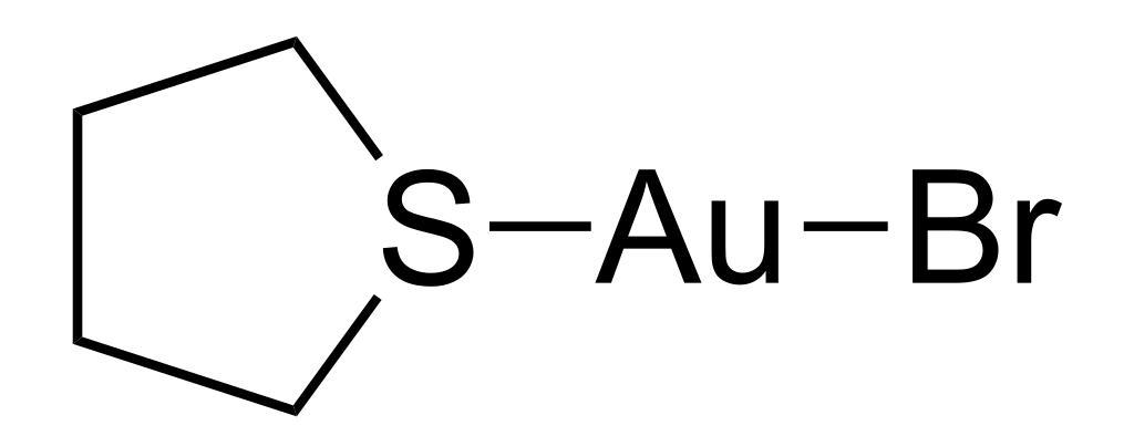 Keywords: Bromo(tetrahydrothiophene)gold(I).svg Chemical structure of Bromo tetrahydrothiophene gold I Own 14 05 17 February 2011 UTC Ed Edgar181 Gold complexes Tetrahydrothiophene complexes