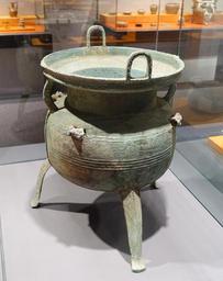 Keywords: Bronze ding tripod with dished mouth, two lugs, and four frogs design, Han dynasty, from Tuodong, Yunfuxian - Hong Kong Museum of History - DSC00811.JPG en Exhibit in the Hong Kong Museum of History Hong Kong This artwork is old enough so that it is in the public domain Photography was permitted in the museum without restriction 2014-07-27 01 40 42 own Daderot other versions PD-100 cc-zero Bronze of China in the Hong Kong Museum of History Uploaded with UploadWizard |