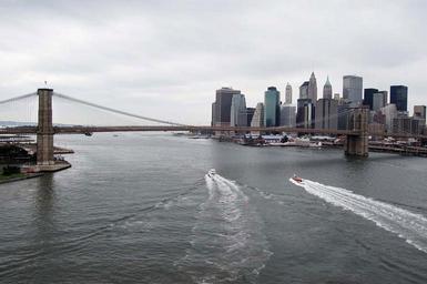 Keywords: Brooklyn Bridge boat yacht sky building architecture waterscape skyline island New York Manhattan city
