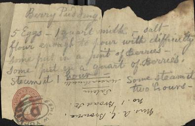 Keywords: cooking manuscript cookbook manuscriptcookbook text writing document Description: Manuscript cookbook of Sarah Smith (Cox) Browne, 1863. Note: Brown is at times spelled with or without the "e" at the end. Repository: Schlesinger Library on the History of Women in America. Collection: Brown Family (Additional papers) Call Number: 87-M144 Catalog Record: id.lib.harvard.edu/aleph/012163425/catalog Questions? Ask a Schlesinger Librarian Description: Manuscript cookbook of Sarah Smith (Cox) Browne, 1863. Note: Brown is at times spelled with or without the "e" at the end. Repository: Schlesinger Library on the History of Women in America. Collection: Brown Family (Additional papers) Call Number: 87-M144 Catalog Record: id.lib.harvard.edu/aleph/012163425/catalog Questions? Ask a Schlesinger Librarian