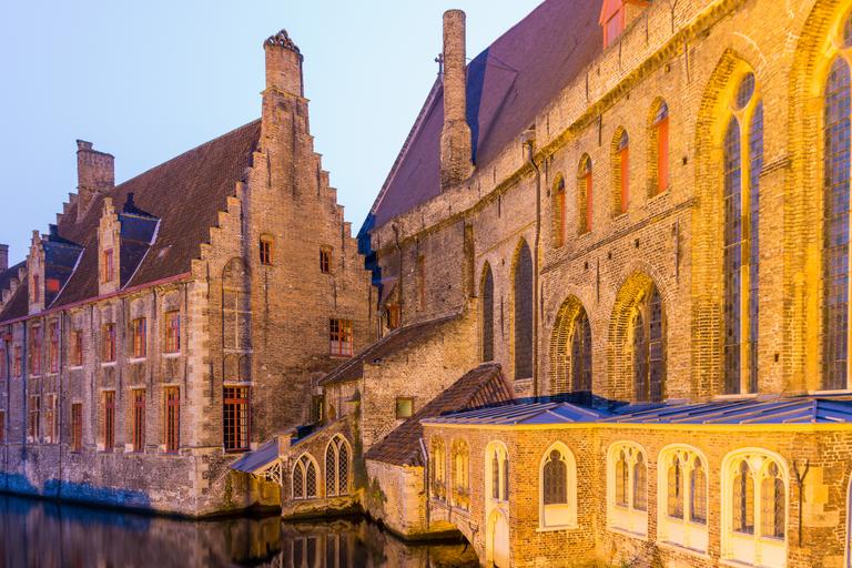 Keywords: bruges old town night photograph historically architecture facade idyllic romantic water canals mood channel waterways picturesque