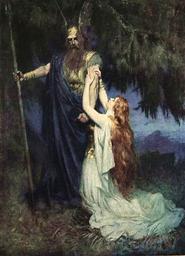 Keywords: Brunhilde knelt at his feet.jpg Artwork 1905 oil on canvas x cm Private collection accession number object history credit line Ferdinand Leeke 1905 PD-old-auto 1937 Ferdinand Leeke Brünnhilde 1905 paintings Odin 20th-century mythological paintings 20th-century paintings in private collections Female long hair in art |
