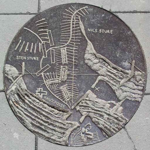 Keywords: Brunkeberg 3.jpg sv Skulpturgrupp till minne av slaget vid Brunkeberg 1471 Gruppen är skulpterad av Bo Andersson f 1946 och består av fem gjutgärnsplattor 64 cm i diameter i marken utanför Riksbankens kontor på Brunkebergstorg Beställare Riksbanken Rest 1997 2012-03-29 own Jssfrk FoP-Sweden cc-zero Uploaded with UploadWizard Slaget vid Brunkeberg sculpture |