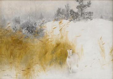 | Keywords: Bruno Liljefors - Winter Hare 1928.jpg  oil canvas cm 58 83 accession number object history credit line http //auktionsverket se/auction/fine-arts/2010-12-08/2689-bruno-liljefors-1860-1939-vinterhare-signerad-och-/ Stockholms Auktionsverk PD-old-auto 1939 1928 paintings in Sweden Winter landscape paintings Paintings by Bruno Liljefors with hares |