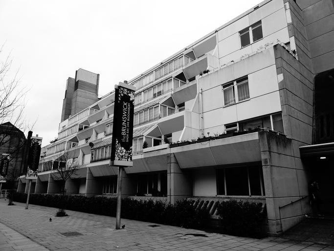 | Keywords: blackandwhite monochrome outdoor building architecture road building complex black and white It was designed by Patrick Hodgkinson[2] in the mid-1960s, based on studies by Leslie Martin.[3] It was initially planned as a private development at a time when private, mixed-use development in the UK was rare. Building started in 1967 and was completed in 1972, though the building fell some way short of its intended size. The original plan extended up to Euston Road but the Ministry of Defence would not release the site of a building they leased for use by the Territorial Army (and that still stands next to the Centre today)[citation needed]. After failing to attract sufficient private buyers on time, the residential section was leased to the London Borough of Camden for use as council housing, while the developer retained ownership of the structure and shopping areas. The exterior of the building was never painted because the Borough could not afford to complete work on the building after they took control. In Hodgkinson's design, the blocks would have been painted cream, a shade typical of the Georgian period, as a homage to the terraced houses that previously stood on the site and those that still surround it. Despite being widely disliked by those who are unsympathetic to modernist architecture, it achieved Grade II status in 2000. By this time, however, many of its shop premises were unoccupied. Plans for renovation had repeatedly been blocked by residents' committees but in November 2002, the £22 million project began. This included the painting of the blocks in their originally-planned colour and the commissioning of artist Susanna Heron to introduce water features to the central space.[4][2] The major work was completed in late 2006 with the opening of branches of several high street chain stores and restaurants. The dual management has caused problems though, as the landlord restored the structure of the estate but the council is responsible for maintenance of the residential properties - so while the concrete structure was restored, the windows remained untouched, detracting from the overall aesthetic of the development. In 2007, the council started work on replacing the windows that has resulted in the residents having scaffolding outside their flats for the second time in just a few years. Now referring to itself as The Brunswick, the centre contains 560 flats, various shops, cafés and restaurants, a Waitrose supermarket, and the Renoir Cinema (one of London's Curzon Cinemas group). It was designed by Patrick Hodgkinson[2] in the mid-1960s, based on studies by Leslie Martin.[3] It was initially planned as a private development at a time when private, mixed-use development in the UK was rare. Building started in 1967 and was completed in 1972, though the building fell some way short of its intended size. The original plan extended up to Euston Road but the Ministry of Defence would not release the site of a building they leased for use by the Territorial Army (and that still stands next to the Centre today)[citation needed]. After failing to attract sufficient private buyers on time, the residential section was leased to the London Borough of Camden for use as council housing, while the developer retained ownership of the structure and shopping areas. The exterior of the building was never painted because the Borough could not afford to complete work on the building after they took control. In Hodgkinson's design, the blocks would have been painted cream, a shade typical of the Georgian period, as a homage to the terraced houses that previously stood on the site and those that still surround it. Despite being widely disliked by those who are unsympathetic to modernist architecture, it achieved Grade II status in 2000. By this time, however, many of its shop premises were unoccupied. Plans for renovation had repeatedly been blocked by residents' committees but in November 2002, the £22 million project began. This included the painting of the blocks in their originally-planned colour and the commissioning of artist Susanna Heron to introduce water features to the central space.[4][2] The major work was completed in late 2006 with the opening of branches of several high street chain stores and restaurants. The dual management has caused problems though, as the landlord restored the structure of the estate but the council is responsible for maintenance of the residential properties - so while the concrete structure was restored, the windows remained untouched, detracting from the overall aesthetic of the development. In 2007, the council started work on replacing the windows that has resulted in the residents having scaffolding outside their flats for the second time in just a few years. Now referring to itself as The Brunswick, the centre contains 560 flats, various shops, cafés and restaurants, a Waitrose supermarket, and the Renoir Cinema (one of London's Curzon Cinemas group). |
