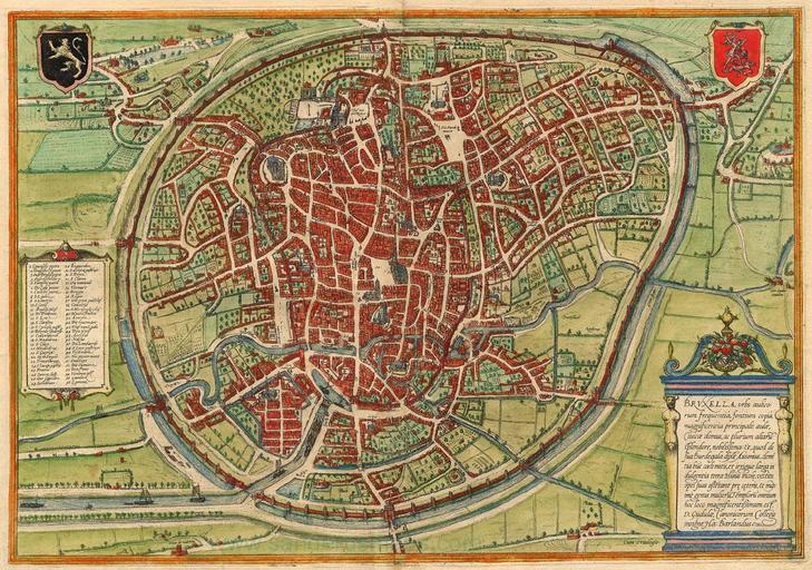 Keywords: Brussels, belgium, Braun & Hogenberg, 1576.jpg en Antique map of Brussel - Bruxelles by Braun Hogenberg Bruxella Urbs Aulicorum Frequentia Fontium Copia Magnificentia Principalis Aulae - Braun Hogenberg 1576 Bird's-eye plan of Brussels with key to locations Copper engraving Size 33 x 47cm 12 9 x 18 3 inches Verso text German Condition Old coloured From Beschreibung und Contrafactur der Vornembster Stät der Welt Liber Primus Köln 1572 Koeman B H7 http //www sanderusmaps com/antique-maps/europe/brussel--bruxelles_5344 cfm Braun_ _Hogenberg 1576 PD-old-100 Maps of Brussels by Braun Hogenberg |