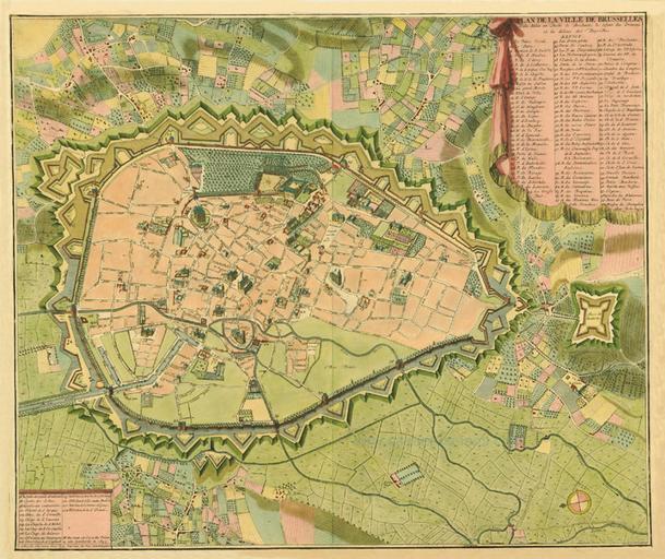 Keywords: Brussels, Belgium, Fricx E. ,1712.jpg en Antique map of Brussel - Bruxelles by Fricx E Plan de la ville de Brusselles - Fricx E 1712 Copper engraving Size 50 x 60cm 20 x 23 inches Verso Blank Condition Old coloured new upper margin From Table des cartes des Pays Bas et des Frontières de France Avec un recueil des plans des villes sièges et battailles données entre les Hauts Alliés et la France Bruxelles H Fricx 1712 http //www sanderusmaps com/antique-maps/europe/brussel--bruxelles_19908 cfm Fricx_E 1712 PD-old-100 Old maps of Brussels 1712 Maps by Eugène-Henri Fricx |