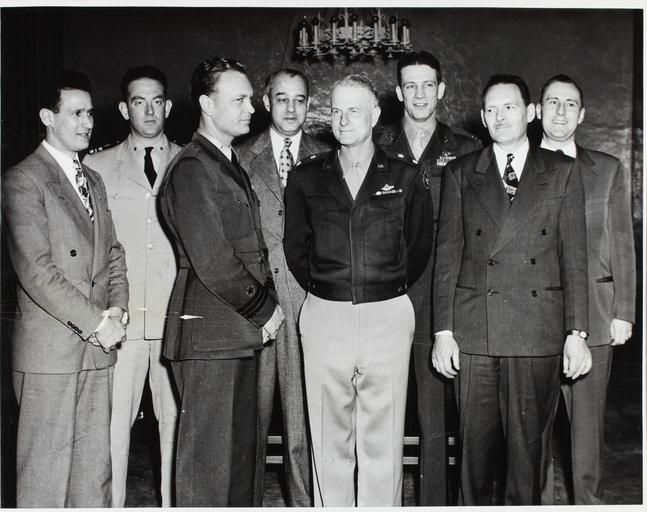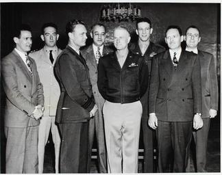 | Keywords: alameda sdasm blackandwhite black and white SDASM.CATALOG: Renison_00024 SDASM.TITLE: Buaer and O&R Alameda visit base of General Jones, Sacramento Air Material Area SDASM.DATE: 3/19/1948 SDASM.LOCATION: McClellan AFB SDASM.ADDITIONAL INFORMATION: (L to R) G. Muzzio, Jerry Barlow, Fred Kersting, William Renison, General Jones, Frank Wiggin, F. Orrell, Bill Morhard SDASM.COLLECTION: William H. Renison Special Collection SDASM.CATALOG: Renison_00024 SDASM.TITLE: Buaer and O&R Alameda visit base of General Jones, Sacramento Air Material Area SDASM.DATE: 3/19/1948 SDASM.LOCATION: McClellan AFB SDASM.ADDITIONAL INFORMATION: (L to R) G. Muzzio, Jerry Barlow, Fred Kersting, William Renison, General Jones, Frank Wiggin, F. Orrell, Bill Morhard SDASM.COLLECTION: William H. Renison Special Collection |